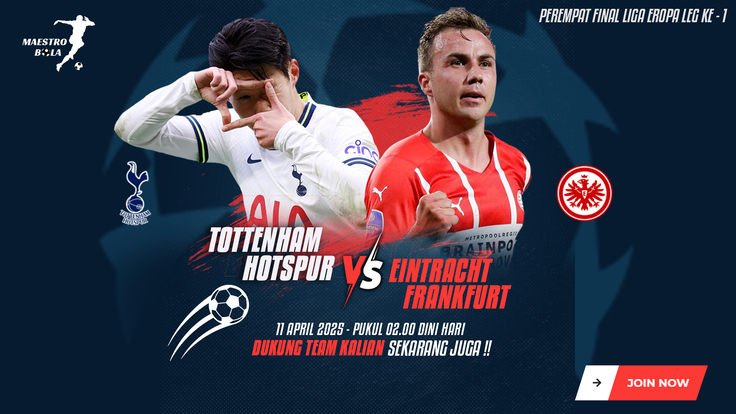 MAESTROBOLA.COM – Pertarungan Tottenham Hotspur vs Eintracht Frankfurt pada leg pertama perempat final Liga Europa 2024-2025 diyakini banyak yang memprediksi akan jadi tuan rumah yang menang. banyak yang memberi prediksi pada pertandingan ini dengan memasang skor 2-1 untuk The Lilywhites, di bursa taruhan pun skor itu yang paling difavoritkan